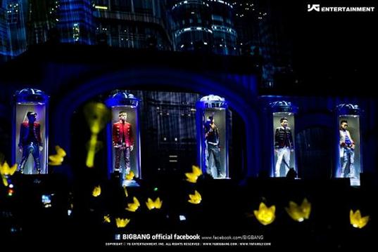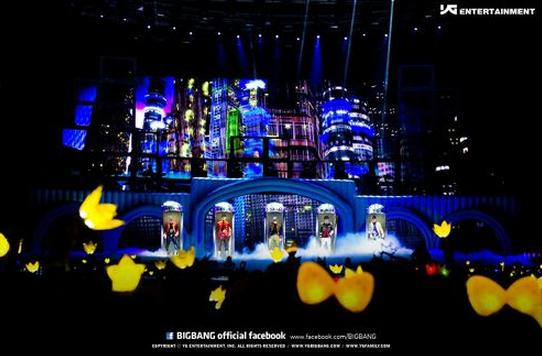 Para combinar com a letra, “Caindo profundamente, minha imagem é bela”, começando com a Intro de Alive, o Big Bang caiu do céu, seguros por cabos! Num palco, onde água caía ao fundo, eles performaram Blue, Bad Boy e Fantastic Baby, de tal maneira que a platéia gritou, “Claro, é o Big Bang!”.