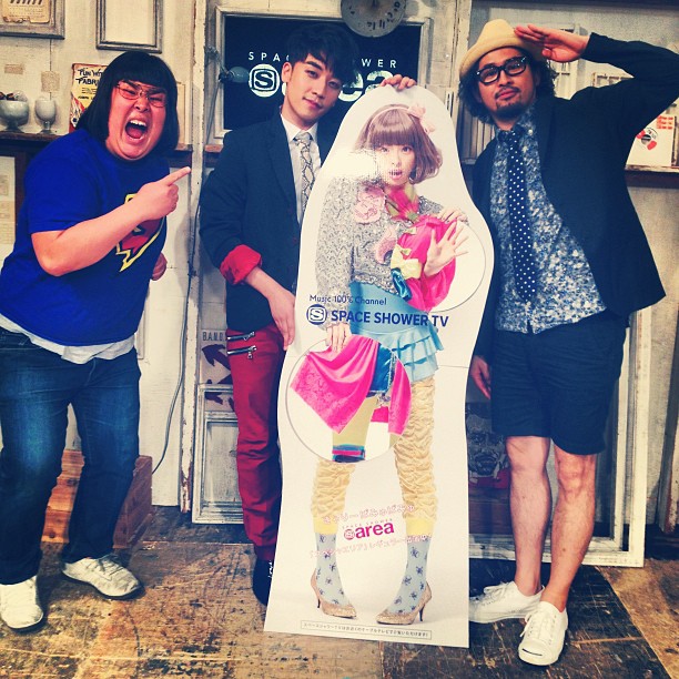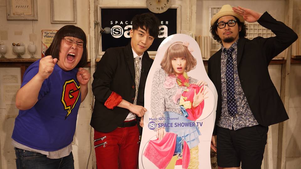 Seungri ao lado dos apresentadores do programa japonês “Space Shower Area“, da SSTV, nas imagens postadas na página oficial do Facebook do programa e no Instagram de um de seus apresentadores, Saito JxJx Jun, no dia 15 de maio.
